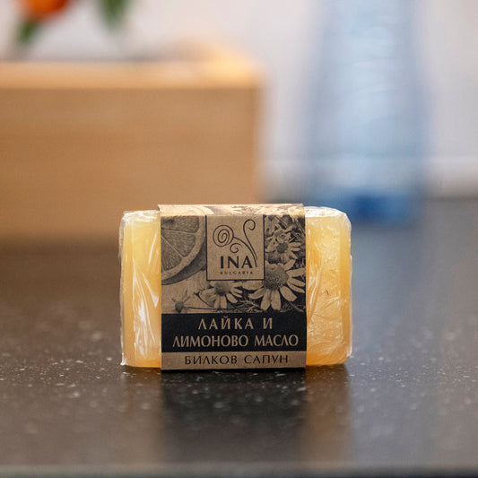 Natürliche Kräuterseife mit Kamillen- und Zitronenöl - beruhigende Wirkung